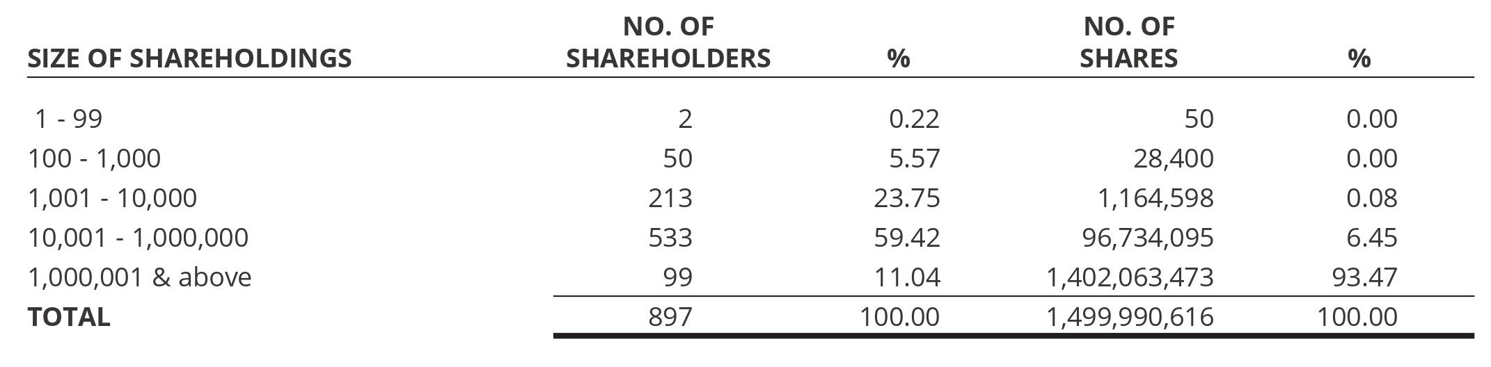 SHAREHOLDINGS HELD IN HANDS OF PUBLIC