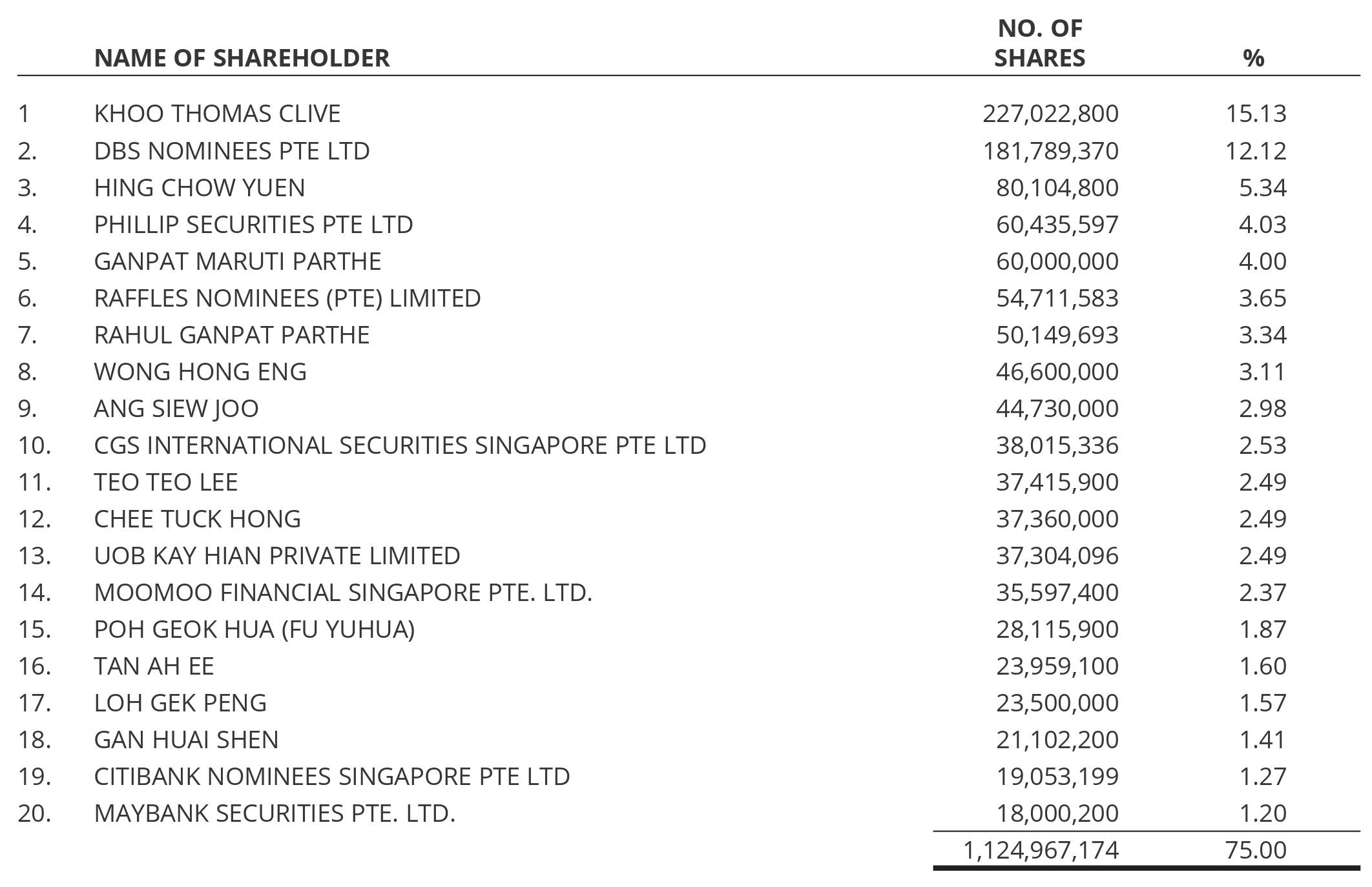 TOP TWENTY SHAREHOLDERS AS AT 29 AUGUST 2025